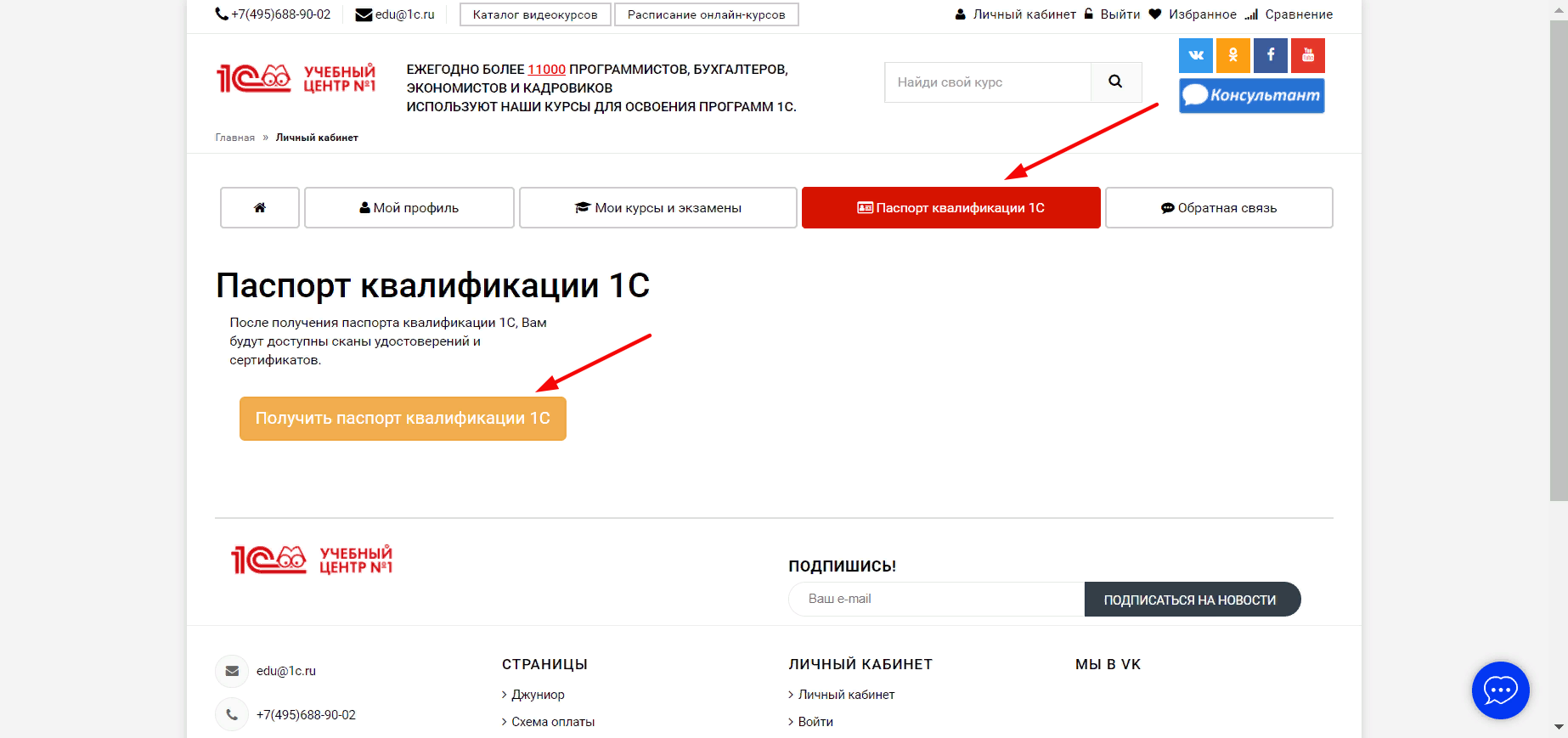 Получить паспорт 1С можно в личном кабинете, в разделе Паспорт квалификации 1С.